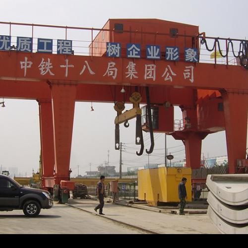 橋式起重機是橫架于車間、倉庫和料場上空進行物料吊運的起重設備。由于它的兩端坐落在高大的水泥柱或者金屬支架上,形狀似橋。橋式起重機的橋架沿鋪設在兩側高架上的軌道縱向運行,可以充分利用橋架下面的空間吊運物料,不受地面設備的阻礙。它是使用范圍最廣、數量最多的一種