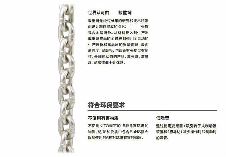 鏈條直徑10.2mm,KITO原裝鍍鎳合金制造,適用于: