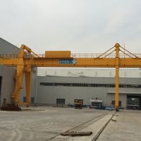 門式起重機是橋式起重機的一種變形。主要用于室外的貨場、料場貨、散貨的裝卸作業。它的金屬結構像門形框架,承載主梁下安裝兩條支腳,可以直接在地面的軌道上行走,主梁兩端可以具有外伸懸臂梁。門式起重機具有場地利用率高、作業范圍大、適應面廣、通用性強等特點,在港口貨場得到廣泛使用。