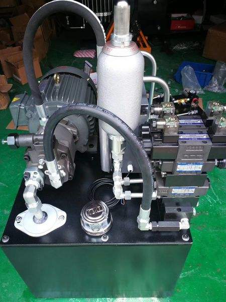 液壓缸是液壓傳動(dòng)系統(tǒng)中的執(zhí)行元件, 它是把液壓能轉(zhuǎn)換成機(jī)械能的能量轉(zhuǎn)換裝 置。液壓馬達(dá)實(shí)現(xiàn)的是連續(xù)回轉(zhuǎn)運(yùn)動(dòng),而液壓缸實(shí)現(xiàn)的則是往復(fù)運(yùn)動(dòng)。液壓缸的結(jié)構(gòu) 型式有活塞缸、柱塞缸、擺動(dòng)缸三大類(lèi),活 塞缸和柱塞缸實(shí)現(xiàn)往復(fù)直線運(yùn)動(dòng),輸出速度 和推力,擺動(dòng)缸實(shí)現(xiàn)往復(fù)擺動(dòng),輸出角速度 (轉(zhuǎn)速) 和轉(zhuǎn)矩。液壓缸除了單個(gè)地使用 外,還可以兩個(gè)或多個(gè)地組合起來(lái)或和其他 機(jī)構(gòu)組合起來(lái)使用。以完成特殊的功用。液壓缸結(jié)構(gòu)簡(jiǎn)單,工作可靠,在機(jī)床的 液壓系統(tǒng)中得到了廣泛的應(yīng)用。液壓動(dòng)力泵站為液壓系統(tǒng)中提供液壓動(dòng)力的泵站,它一般采用符合液