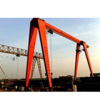 它的金屬結構像門形框架,承載主梁下安裝兩條支腳,可以直接在地面的軌道上行走,主梁兩端可以具有外伸懸臂梁。