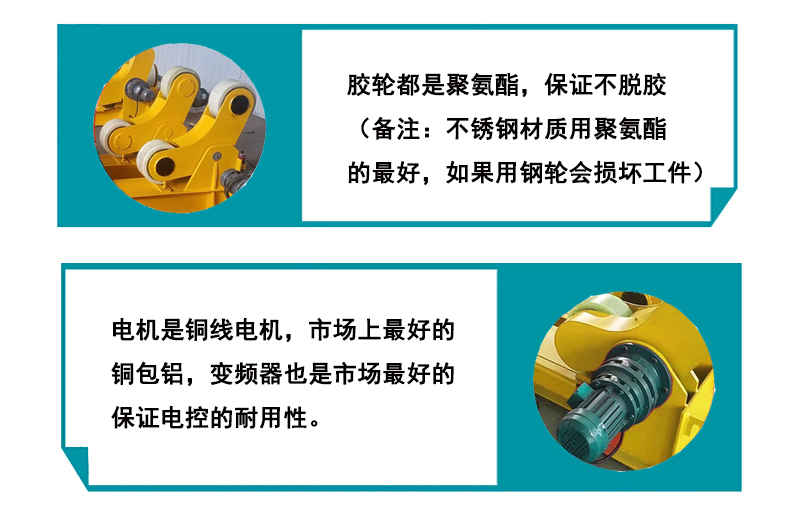 2、膠輪采用疊片式耐磨橡膠片皮組合,永不脫膠,便于更換。