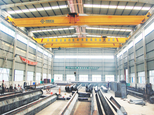 本產品由箱形主梁、端梁、小車和運行機構組成。 電動葫蘆安裝在角車上作為起升機構。 下水平輪與垂直行走輪三點布置。 電動葫蘆的位置由傳統主梁底部提升至主梁上側,有效提高了提升高度。 臺車作為錐形電機運行,用于制動和開式齒輪傳動。 主梁為箱形結構,離軌,上下裝有水平輪,安全可靠,可防止啃軌。 大車運行采用分體驅動、錐形電機制動器、開式齒輪傳動形式。