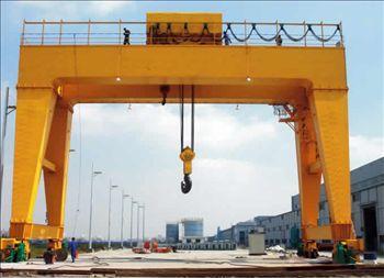 它的金屬結(jié)構(gòu)像門(mén)形框架,承載主梁下安裝兩條支腳,可以直接在地面的軌道上行走,主梁兩端可以具有外伸懸臂梁。