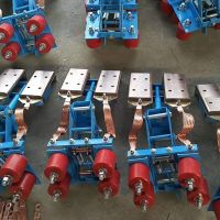 集電器滑觸線(xiàn)系統(tǒng)中集電側(cè)拾取電能的主要裝置,它通過(guò)集電刷與導(dǎo)軌的滑動(dòng)接觸,將電能直接傳導(dǎo)至用電器,從而實(shí)現(xiàn)系統(tǒng)的移動(dòng)供電。集電器由機(jī)械結(jié)構(gòu)的張力裝置和直接與導(dǎo)軌滑動(dòng)接觸的集電刷兩部分組成。